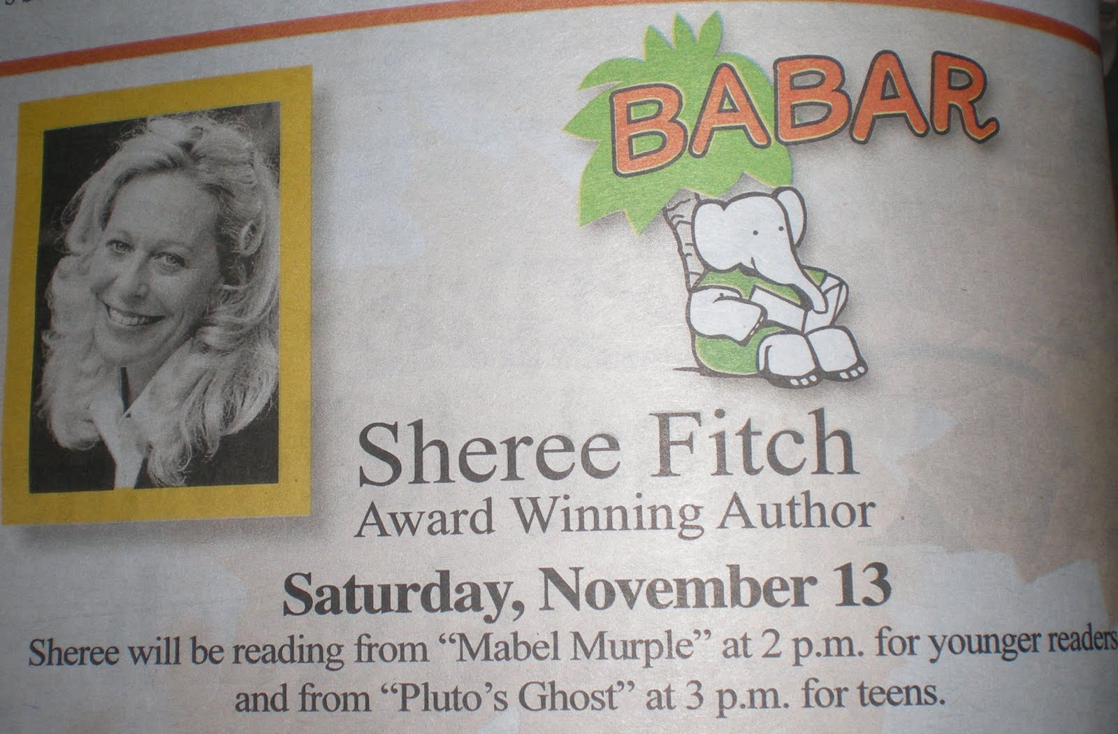 She is going to be at Babar promoting two of her books Mable Murple and Pluto’s Ghost. Sheree’s written two adult novels, three young adult books, several children’s books, and much more.