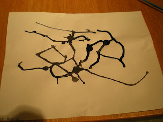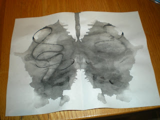 I was going to do a separate post with our inkblots but since my computer has been acting funny most of the week I thought I would just add them to this post. As you can see we didn’t complete them because Michael would see different elements in them and wanted to wait before drawing on them.