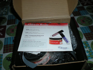 This is how the box looked once I opened it. Nothing fancy just a black box with Julep maven on the sides and black & silver crinkle cut paper strips inside. As you can see all the products are wrapped in bubble wrap and plastic. My box is from the American Beauty collection.