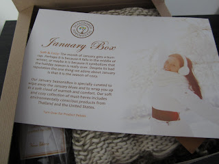Once you open the box you are greeted with the January Box card which talks a little bit about the January box and on the flip side is the product info and why each item was chosen,