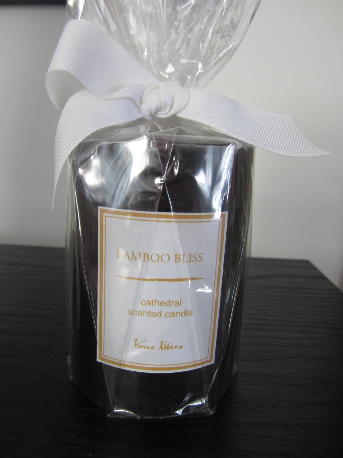 Now you now me and my love for candles so I was thrilled to have gotten this. Its a scented cathedral candle and its in the scent Bamboo Bliss. Its from CAnce Kitira Hand Poured Cathedral Candles. This is made with the best paraffin in the world. It smells really nice.