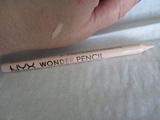 When I looked back to get my next item I quickly noticed the NYX logo and was happy. Since discovering NYX in my beauty boxes I have grown to love this company and slowly picking up a few things from them here and there when they are on sale. This is the NYX Wonder Pencil. This is suppose to be the essential pencil that will fullfill all of my beauty desires.