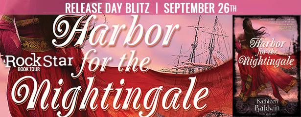 I am so excited that HARBOR FOR THE NIGHTINGALE by Kathleen Baldwin is available now and that I get to share the news! If you haven’t yet heard about this wonderful book by Author Kathleen Baldwin, be sure to check out all the details below. This blitz also includes a giveaway for a finished copy of the book, US Only, courtesy of Kathleen and Rockstar Book Tours. So if you’d like a chance to win, enter in the Rafflecopter at the bottom of this post.