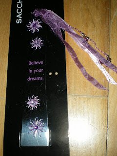 The bookmark is metal and the center of the flowers all have a bead in them. I love the saying on it “Believe in your dreams.”