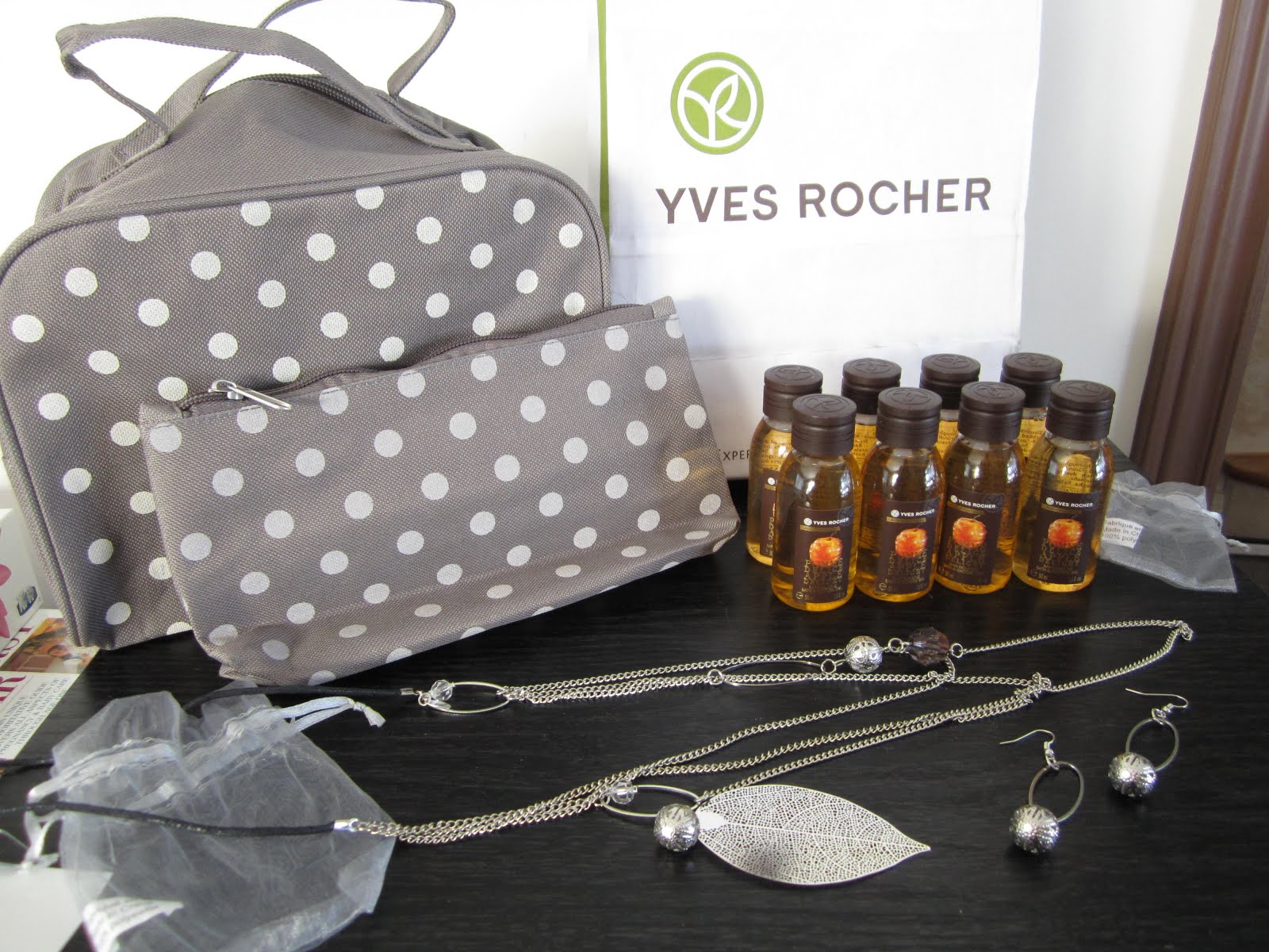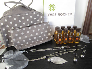 Yves Rocher was actually one of the first places we stopped to shop in. I managed to find my Apple Delights on sale for $1 so I stocked up and bought 8 bottles. They are the mini ones. I also managed to get some freebies since I have a points card for the store and I got two cosmetic bags (a small one and a bigger one) and earrings with necklace.