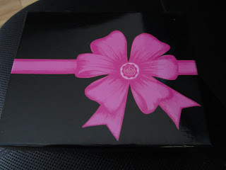 Inside the box you see they used black tisseue paper with the hot pink ribbon which I think is very nice. They even redid the sticker to match the box.