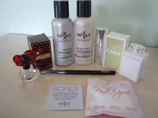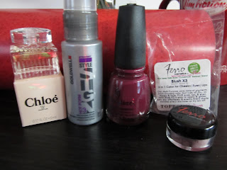 Now onto the items. From previous boxes (not specific to topbox but from the various others) I got: ~Chloe eau to parfum sample (full size is $ 90 for 50ml or $115 for 75ml / sample size is $9.00 for 5ml) Its got a nice powdery scent but its not a favorite so its not something I would reuse.