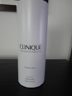 This month I believe all the subscribers got this Clinique Beauty Box. There was a few different boxes being sent out and I got the Repair Wear Laser Focus.