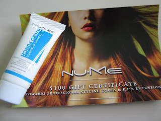 Along with the shampoo NuMe also included a $100 gift certificate to use online for styling tools or hair extensions. I am actually thinking of using that for hair extensions because in a previous box I had gotten the hair extensions to try and just before going to BEA I went and had them put in and I loved them, granted it took some time to get use them but I like being able to add a pop of color to my hair without the commitment of dye.
