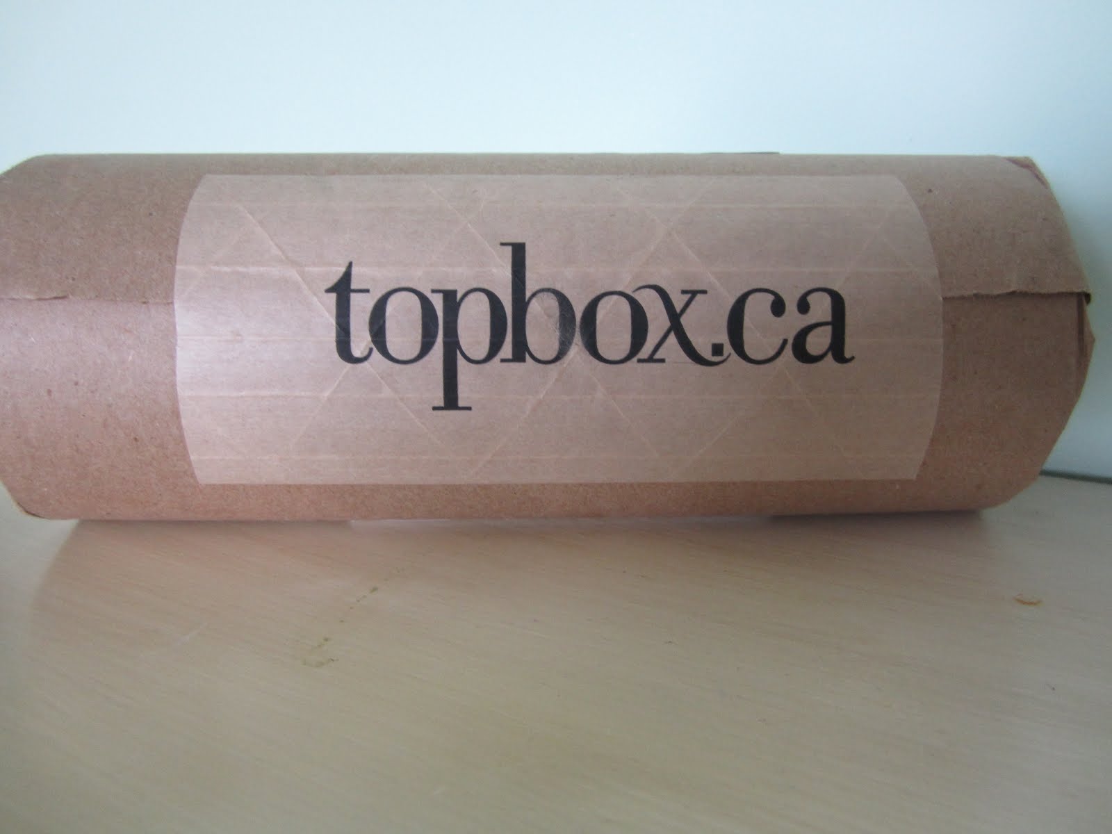 If your new to my blog you might be wondering what Topbox is, well its a Canadian monthly beauty subscription service tube. Yea that’s right its shipped in a tube. Isn’t it pretty. It comes wrapped up in brown paper. These make perfect storage containers and look so pretty sitting on a shelf or dresser etc.